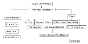 For administrative purposes, the city is divided into seven zones — Central, East, West, North, South, North West, South West. Each zone is further divided into wards totaling 48 wards in seven zones.[5][6] Each ward is represented by four corporators including minimum two women corporators. Thus 48 wards consist of 192 seats in total. An election is held to elect corporators to power. The mayor heads the party, with the largest number of corporators elected. The post of mayor is largely ceremonial, however.