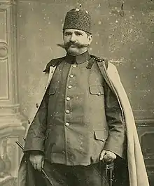 Ahmed Niyazi Bey (1873 – 1913) (Turkish: Resneli Niyazi Bey, Ahmet Niyazi Bey; Albanian: Ahmet Njazi Bej Resnja; "Ahmet Niyazi Bey from Resen") was an Ottoman revolutionary, who was the bey of the Resne (now Resen, North Macedonia) area in the late 19th and early 20th centuries.[1] An ethnic Albanian,[2][3][4] Niyazi was one of the heroes of the 1908 Young Turk Revolution and of suppressing the 1909 countercoup as he played leading roles in both events.[5][6][7][8] Niyazi is also known for the Saraj, a French-style estate he built in Resne.[9]