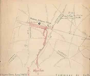 The Aigues-Vives tramway (French Chemin de Fer d'Aigues-Vives-Bourg a Aigues-Vives PLM or colloquially La Lignette) was a 2 km (1.2 mi) long narrow-gauge railway with a gauge of 600 mm (1 ft 11+5⁄8 in) in Aigues-Vives in the department Gard in Southern France. It operated from 1892 to 1901.[2]