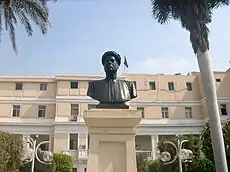 The school of medicine was called el-Demerdash School of Medicine, before establishment of the university. The original El-Demerdash Hospital was established on August 5, 1928, by a generous grant from El-Demerdash Pasha[3] and his wife and daughter. It was built on 12,400 square metres, and had 90 beds and the following sections: quarters for a resident physician and chief nurse, two wards, a surgery unit, out-patient clinic, a laboratory, kitchen, laundry room, isolation ward, an autopsy department and a mosque containing the mausoleum for the El-Demerdash family. The foundation of the hospital was witnessed by many people representing all the society of Egypt and also by the two most powerful figures in the country in that time: Lord George Lloyd (later on George Lloyd, 1st Baron Lloyd), the British high commissioner, and Prime Minister of Egypt Mohamed Mahmoud Pasha. The opening ceremony was covered by Al Ahram, The Times and the Near East journals.[3] It was officially opened on May 5, 1931. A memorial metallic plate and a marble monument were erected to mark this event.