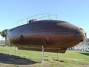 The United States also received a Type XVII boat, U-1406, and went on to begin two AIP submarine projects. Project SCB 66 developed an experimental midget submarine, X-1, which was launched in September 1955. It was originally powered by a hydrogen peroxide/diesel engine and battery system until an explosion of her hydrogen peroxide supply on 20 May 1957. X-1 was later converted to a diesel-electric.[9][10]