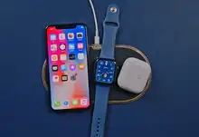 Third party accessory makers mimicked AirPower's design and functionality but were unable to fully replicate Apple's planned features, such as freely placing devices.[14] Apple later sold three-device chargers designed by Mophie and Belkin with the ability to simultaneously charge two Qi devices and an Apple Watch, albeit with a separate receptacle for Apple Watch's inductive charger.[15][16] Apple released its first Qi chargers in 2020 using the proprietary MagSafe standard.[17]