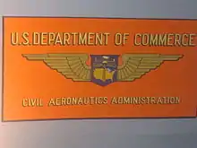 Under President Franklin D. Roosevelt, the Aeronautics Branch cooperated with public works agencies on projects that represented an early form of federal aid to airports.[23] The Branch was restructured and in 1934 received a new name, the Bureau of Air Commerce.[4] Eugene Vidal, nephew of Senator Thomas Gore became its first director.[24] Vidal resigned on February 28, 1937, and was replaced by Fred D. Fagg, Jr.[25] Fagg reorganized the bureau,[26] but retired in April 1938, being replaced by Hindenburg crash investigator Denis Mulligan.[27]