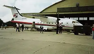The airline continued to lose money in 1994 and 1995. At the time Sørstokken had an insufficient runway to handle such aircraft.[15] Leif Georg Amundsen from Bømlo, through Amundsen Holding, bought all the shares in Air Stord on 31 December 1995. He announced that with the forthcoming expansion of the runway and terminal that the airline would start using the 33-seat Dornier 328 on the Stord to Oslo route.[16] With the take-over the company issued a capital increase of NOK 6.1 million, all bought by Amundsen Holding. With the work on the runway completed, Air Stord's first Dornier 328 could land at Sørstokken on 15 May 1996.[17]