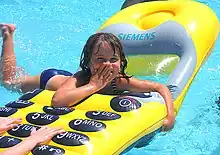 Due to its buoyancy, it is also often used as a water toy or flotation device, and in some countries, including the UK and South Africa, is called a lilo ("Li-lo" being a specific trademark — derived from the phrase "lie low") or a Readybed.[1]