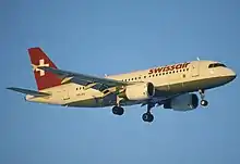 Delivery of the first A319, to Swissair, occurred on 25 April 1996; it entered service by month's end.[9] In January 1997, an A319 broke a record during a delivery flight by flying the 3,588 nautical miles (6,645 km) great circle route to Winnipeg, Manitoba from Hamburg in 9 hours and 5 minutes.[9] The A319 has proven popular with low-cost airlines such as EasyJet, which purchased 172 of them.[4]