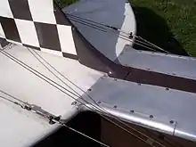 Mechanical or manually operated flight control systems are the most basic method of controlling an aircraft. They were used in early aircraft and are currently used in small aircraft where the aerodynamic forces are not excessive. Very early aircraft, such as the Wright Flyer I, Blériot XI and Fokker Eindecker used a system of wing warping where no conventionally hinged control surfaces were used on the wing, and sometimes not even for pitch control as on the Wright Flyer I and original versions of the 1909 Etrich Taube, which only had a hinged/pivoting rudder in addition to the warping-operated pitch and roll controls.[5] A manual flight control system uses a collection of mechanical parts such as pushrods, tension cables, pulleys, counterweights, and sometimes chains to transmit the forces applied to the cockpit controls directly to the control surfaces. Turnbuckles are often used to adjust control cable tension. The Cessna Skyhawk is a typical example of an aircraft that uses this type of system. Gust locks are often used on parked aircraft with mechanical systems to protect the control surfaces and linkages from damage from wind. Some aircraft have gust locks fitted as part of the control system.[6]