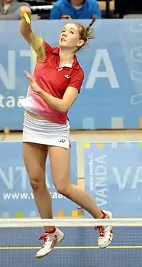 Airi Mikkelä (born 5 April 1993) is a Finnish badminton player. She started playing badminton at 8 years old, then in 2009, she joined Finnish national badminton team.[1] In 2010, she participated at the 2010 Summer Youth Olympics in Singapore. In 2014, she won Iceland International tournament in women's singles event. In 2015, she became the runner-up of Mauritius and Mexico international tournament. In 2016, she won Peru International Series and became the runner-up of Iceland International tournament.[2]