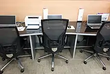 Other amenities typically include flight information monitors, televisions, newspapers, and magazines,[1] plus business centers with desks, internet workstations, telephones,[1] photocopiers and fax services. Complimentary wireless Internet access for patrons is also common.[2][15]