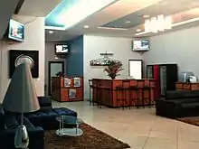 Airport lounges provide greater comfort and services to travelers with a membership in a location separate from the standard airport environment. While standard domestic and international airport lounges include basic seating and access to charging stations, these membership-based lounges provide more comfortable and spacious seating.[8]