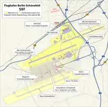 - Berlin Schönefeld Airport (IATA: SXF, ICAO: EDDB), founded in 1934, the airport for East Berlin during the Cold War and closed in 2020, the old terminal and one of the runways became part of Berlin Brandenburg Airport. The former northern runway (shut down in 2007) crossed the city and state boundary,[1] the rest of the airport (including the terminal building) was in Brandenburg.