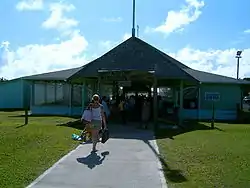 ![]() Entrance to Aitutaki Airport. Note the sign "Aitutaki International Airport", although there are no international flights. | |||||||||||||||