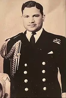 In December 1953, he was appointed the next Commodore-in-Charge Bombay (COMBAY) in the rank of Commodore. He relinquished command of the dockyard, handing over to Captain S. G. Karmarkar in March 1954.[22] He then assumed office of COMBAY from Commodore R M T Taylor, the first Indian Officer to do so.[23] This appointment was later upgraded to Rear Admiral and re-designated Flag officer Bombay in 1958, and to Vice Admiral and re-designated Flag Officer Commanding-in-Chief Western Naval Command in 1968.[24] Later that year, he was selected to attend the Imperial Defence College in the UK. He relinquished command to Commodore Adhar Kumar Chatterji in November.[25] After the year-long course, he returned to India and took over as Deputy Chief of the Naval Staff on 10 March 1956 from Commodore Ram Dass Katari, who took charge as the first Indian Fleet Commander.[26][27]