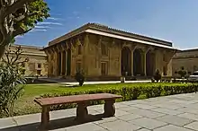 In 1556, Ajmer came under the Mughal Empire after being conquered by Mughal Emperor Akbar.[11] It was made the capital of the eponymous Ajmer Subah. The city enjoyed special favour under the Mughals, who made frequent pilgrimages to the city to visit the dargah of Moinuddin Chishti. The city was also used as a military base for campaigns against Rajput rulers, and on a number of occasions became the site of celebration when a campaign bore success. Mughal Emperors and their nobles made generous donations to the city, and endowed it with constructions such as Akbar's palace and pavilions along the Ana Sagar.[12][13][14] Their most prominent building activities were in the dargah and its vicinity.[15] Jahanara Begum and Dara Shikoh, children of Shah Jahan, were both born in the city in 1614 and 1615 respectively.[16][17]