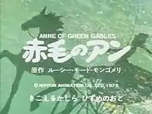 Anne of Green Gables (赤毛のアン, Akage no An, 'Red-haired Anne') is a Japanese animated television series and the fifth entry in Nippon Animation's World Masterpiece Theater (which has been known by several different names). It was adapted from the 1908 novel Anne of Green Gables by Lucy Maud Montgomery. Produced by Nippon Animation in 1979, it was first broadcast on Fuji TV from January 7, 1979, to December 30, 1979. Fifty episodes were produced in total.[1] The first six episodes were later edited into a compilation film released in 2010.
