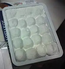 Akanes (Greek: Ακανές) is a Greek sweet similar to loukoumi, only that it is flavoured with fresh goatsmilk butter rather than fruit essences. It is made exclusively in the town of Serres in Northern Greece. The name akanes dates back to the time of Ottoman rule in Greece, when it was called hakanes halva or royal halva (hakan deriving from the Turkish han and kağan).[1] The sweet is available especially in the regional unit of Serres and in delicacy shops throughout Greece.