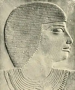 Akhethetep (also Akhethotep or Akhty-hotep) was a high dignitary of ancient Egypt who lived during the Fifth Dynasty around 2400 BC. Akhethotep and his son Ptahhotep Tjefi were senior court officials during the rule of Djedkare (2414–2375 BC) and of Unas (Wenis), towards the end of the 5th Dynasty (2494–2345 BC). Akhethetep's titles included that of a vizier, making him to the highest official at the royal court, only second to the king. He was also overseer of the treasuries, overseer of the scribes of the king's documents and overseer of the granaries. Akhethetep was the son of Ptahhotep. His father was vizier too.[1]