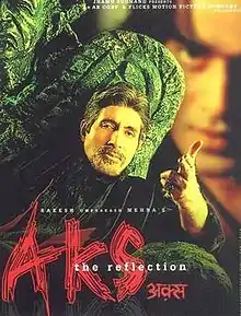 Aks (transl. Reflection) is an Indian 2001 Hindi-language supernatural action thriller film directed by Rakeysh Omprakash Mehra, and starring Amitabh Bachchan, Raveena Tandon, and Manoj Bajpayee in leading roles. The music was composed by Anu Malik. Despite receiving mixed reviews from critics and being a box office flop, it won three awards at the 47th Filmfare Awards: Best Actor — Critics (Bachchan), Special Award Performance (Tandon), and Best Sound Design (Ranjan). Bachchan and Bajpayee were nominated for the Best Actor and Best Villain at the same ceremony as well.