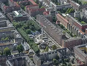 The Classen Terraces were formerly located at the site. They were built for indigent workers by the Classenske Fideicommis in 1866–1880.[1] Frederiksberg Municipality bought the entire development in 1907 to demolish it, but a shortage of housing and a lack of funds and building materials during the two world wars delayed the plans.[2]