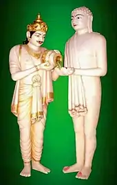 In Jainism, Akshaya Tritiya contains much importance as it commemorates the first Tirthankara, Rishabhanatha, ending his one-year asceticism by consuming sugarcane juice poured into his cupped hands. Some Jains refer to the festival as Varshi Tapa.[8] Teerthankar Shri Aadinatha took diksha (initiation into digambar mudra/form) and left all his wealth and luxuries of his Kingdom of Ayodhya which used to be of Gold at his time. After his Deeksha , he fasted for 6 months and then started to look out for Ahaar he continued to Vihar as people in that age didn't know about the practice and method of Ahar Daan. But here comes the story of Raja Shreyansh , he was the younger brother of the King of Hastinapur Raja Sonprabha.