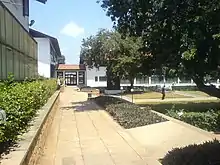 The Hall council also adopted a crest designed by Prof. L. H Ofosu-Appiah of the Department of classics as the official logo of the Hall, the crest depicts a cocoa tree, an open book and a drum with the motto of the Hall, Laboremus et sapiamus which directly translated in English means "Labour and wisdom" (Let us work and learn wisdom)[4] Akuafo Hall was opened on October 4, 1955, by the Hon. Dr. Kwame Nkrumah, then first Prime Minister of Ghana.[4] A highpoint of the opening ceremony was the unveiling of a plaque which commemorated the gesture of kindness of the Government and peoples of the United Kingdom as well as the farmers of the Gold Coast towards the establishment of the Hall. On October 5, 1955, the first junior members of the Hall received keys to their cubicles and formally assumed residence.[5] Akuafo Hall was built to accommodate 600 students[6] however two annexes (A&B) were constructed under the Regime of Lt. General Kutu Acheampong to provide the hall with additional accommodation. As at 17thJanuary, 2005 Akuafo hall officially accommodates 1,524 students[4] Akuafo Hall began as male hall of residence with the first badge of 131 students each allocated a single room. However, in October 1991, Akuafo Hall admitted the first batch of female students and provided them with resident accommodation thus becoming a mixed hall in statu pupilari.