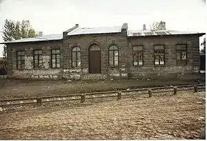 The station was originally opened in 1899 by the Transcaucasus Railway as Shuregel station (Turkish: Şöregel, Russian: Шурегель), when Akyaka was a part of the Russian Empire. In 1922, the station was renamed Kızılçakçak station to reflect the name change of the settlement. The railway, and the station, was taken over by the Turkish government-owned Eastern Railway in 1925, which became the Turkish State Railways in 1929. In 1962, TCDD converted the broad gauge railway to standard gauge and rebuilt the station, which was renamed to its current name in 1966.[2] Due to the border closure between Turkey and Armenia, train service east of Kars was suspended in 1993 until February 2011, when TCDD returned train service to Akyaka.