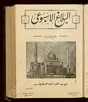 The Arabic-language journal Al-Balagh al-Usbuʿi (Arabic: البلاغ الاسبوعی; DMG: al-Balāġ al-Usbūʿī; English: "The Weekly News") was published weekly in Cairo, Egypt, between 1926 and 1930. It was the weekly edition of the newspaper Al Balagh.[1] The first issue of the journal appeared in November 1926.[1]