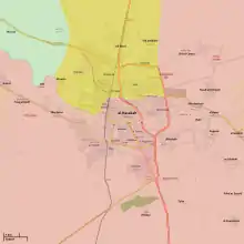 On 19 November, the Islamist rebels launched an assault on the PYD in Ras al-Ayn[48] A rebel sniper also assassinated Abed Khalil, the president of the local PYD council.[49] By the next, SOHR reported that the death toll in the rebel-PYD fighting in the town had reached 34.[50] The opposition activist group Local Coordination Committees of Syria put the number of deaths at 46.[51] Also on 19 November, members of the al-Nusra Front and Ghuraba al-Sham opened fire on a YPG checkpoint, sparking clashes that killed dozens of people. The rebels planned to launch an offensive in Qamishli, but were stopped by the Assyrian Democratic Organization.[52] Meanwhile, pro-government Arab tribes in Qamishli organized themselves into the Popular Committees and clashed with the PYD.[25]