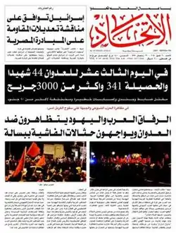 Al-Ittihad (Arabic: الاتحاد, lit. The Union) is an Israeli Arabic-language daily newspaper based in Haifa and established in 1944 during Mandatory Palestine. The newspaper is the oldest Arab media outlet in Israel and is considered the most important,[1] it is owned by Maki, the Israeli Communist Party. It is currently edited by Aida Touma-Suleiman.