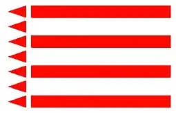 The Al Sulaimi Flag (Arabic: العلم السليمي) is an old heritage flag used historically by the Al Bin Ali tribe until the 1960s in Bahrain, Qatar, Kuwait, and the Eastern province of the Kingdom of Saudi Arabia. It consists of four red and three white stripes with seven red triangles facing towards the west.[1]