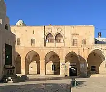 It consists of two storeys.[1] On the ground floor, there is from north to south along the Haram side: first a tomb chamber, then a courtyard, then the "lower mosque". The tomb chamber has an entrance from the north side, that is from the Zuqāq Bāb al-Maṭhara, an no-exit alley.[11]
