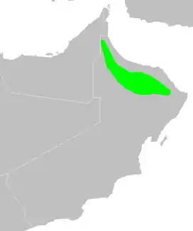 Endemic and near-endemic species include Herniaria maskatensis, Pteropyrum scoparium, Rumex limoniastrum, Dionysia mira, Tephrosia haussknechtii, Searsia aucheri, Polygala mascatensis, Convolvulus ulicinus, Teucrium mascatense, Verbascum akdarense, Iphiona horrida,[6] Schweinfurthia imbricata,[7] and Ziziphus hajarensis.[8] Wider-ranging native species include Limonium axillare, Ochradiscus aucheri, Sideroxylon mascatense, Convolvulus virgatus, Salvia macilenta, Viola cinerea, Cometes surattensis, Capparis spinosa var. mucronifolia, Cleome rupicola, Ebenus stellata, Taverniera glabra, Barleria aucheriana, and Pluchea arabica. Many species are shared with the South Iran Nubo–Sindian desert and semi-desert ecoregion to the north across the Persian Gulf and Gulf of Oman.[6]