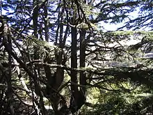 The reserve is also home to 24 tree species, of which some are found in Europe and the Mediterranean area as well as in Lebanon. The reserve is known for its official's efforts to save the cedar of Lebanon through continues management of the forests and planting new trees in previously logged and deforestated areas. The reserve form the last natural limits to the spread of Cedrus libani on the planet. The reserve is also known for the ability of the forests to regenerate by their own without any human interference. Other tree species in the reserve include : Cyprus oak (Quercus infectoria ), Brant’s oak (Quercus brantii), kermes oak (Quercus calliprinos), Calabrian pine (Pinus brutia), Aleppo pine (Pinus halepensis), stone pine (Pinus pinea), Greek juniper (Juniperus excelca), Syrian juniper (Arceuthos drupacea).