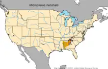 - NatureServe (2013). "Micropterus henshalli". IUCN Red List of Threatened Species. 2013: e.T15351329A19035171. doi:10.2305/IUCN.UK.2013-1.RLTS.T15351329A19035171.en. Retrieved 19 November 2021.
