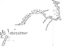 Alambique Creek begins below Skyline Boulevard on Bear Gulch Road near the intersection with Bear Glen Drive.[1] After crossing La Honda Road, and just south of the intersection of Mountain Home Road and Portola Road, Alambique Creek enters Lloyd's Pond (Upper Searsville Pond) which is currently impounded by the road-fill of Portola Road and a culvert. Of note, Lloyd's Pond is likely named for William Lloyd (1823-1895), who operated a blacksmith shop in historic Searsville, and who partnered with other early pioneers Dr. Robert O. Tripp, James "Grizzly" Ryder, and Alvinza Hayward, a bullwhacker from Amador County, to harvest the redwoods.[6] Next, Alambique Creek flows through a culvert under Portola Road into the Middle Searsville Pond (Middle Searsville Marsh) at its confluence with Sausal Creek.[2][7]