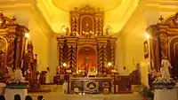 From 1849 to 1878, Fr. Jose Tornos continued the rebuilding of the new church. In 1857, the church was inaugurated built with stone walls, nipa roofing, a tabernacle and a niche for the church's patron, Saint Joseph. In 1860, Juan Alaminos y Vivar visited the town and in 1873, the town's name was changed into Alaminos in honor of the governor-general of the Philippines.[3][4][2]
