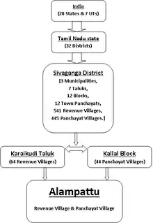 Alampattu village is a part of Karaikudi (State Assembly Constituency) and Sivaganga (Lok Sabha constituency).
