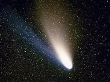 Comet Hale–Bopp, originally labeled C/1995 O1, and sometimes called "the Great Comet of 1997", became one of the most-viewed comets in human history, and the brightest comet seen since Comet West in 1976, appearing "1000 times brighter than Comet Halley did at the same distance."[20][21]