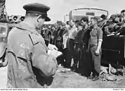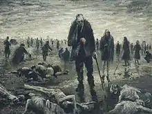 In 1945 Moore accompanied the British 11th Armoured Division when they liberated the Bergen-Belsen concentration camp in Germany.[4] He spent three days sketching and painting the state of the camp, its prisoners and their captors, including Fritz Klein.[1][14] It was suggested by one soldier that nobody would believe the portrayals, prompting Moore to also photograph the scenes as proof.[4][15]