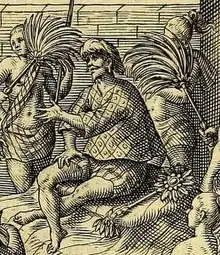 ![]() Alauddin Ri'ayat Syah, surrounded by his female guards. 1604 engraving. | |