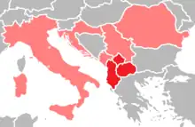 The language is spoken by approximately 6 million people in the Balkans, primarily in Albania, Kosovo, North Macedonia, Serbia, Montenegro and Greece.[1] However, due to old communities in Italy and the large Albanian diaspora, the worldwide total of speakers is much higher than in Southern Europe and numbers approximately 7.5 million.[1][15]
