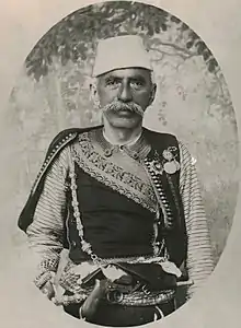 On 14 May, three days after his proclamation, Shefqet Turgut Pasha ordered his troops to seize Dečić, hill that overlooked Tuzi.[19] Sixty Albanian chieftains rejected Turgut Pasha's proclamation on their meeting in Podgorica on 18 May.[20] After almost a month of intense fightings rebels were trapped and their only choices were either to die fighting, to surrender or to flee to Montenegro.[21] Most of the rebels chose to flee to Montenegro which became a base for large number of rebels determined to attack the Ottoman Empire.[22] Ismail Kemal Bey and Tiranli Cemal bey traveled from Italy to Montenegro at the end of May and met the rebels to convince them to adopt the nationalistic agenda which they eventually did.[23][24] On 12 June Porte prematurely proclaimed that the revolt had ended.[25]