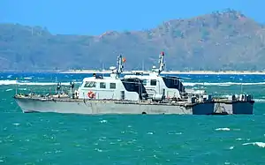 ![]() East Timorese patrol boats Oecusse (P101) and Atauro (P102) on anchor in Port Hera off Dili | |