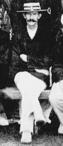 Atkins was a middle-order batsman and excellent fieldsman in the outfield, praised in 1896 for his "brilliancy and cat-like dash".[3] He captained Queensland on several occasions, including the closely fought match against New South Wales in Sydney in 1902-03 when he made his two highest scores, 82 and 60.[4] He and his wife Emily had three children.[5]