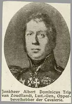 Jonkheer Albert Dominicus Trip van Zoudtlandt (Groningen, 13 October 1776—The Hague, 23 March 1835) was a Dutch lieutenant-general of cavalry who headed the Dutch heavy cavalry brigade at the Battle of Waterloo.