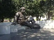 The Albert Einstein Memorial is a monumental bronze statue by sculptor Robert Berks, depicting Albert Einstein seated with manuscript papers in hand. It is located in central Washington, D.C., United States, in a grove of trees at the southwest corner of the grounds of the National Academy of Sciences at 2101 Constitution Avenue N.W., near the Vietnam Veterans Memorial. Two replicas exist at the Israel Academy of Sciences and Humanities and the Georgia Institute of Technology.