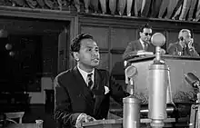 Ratsimamanga was a member of the delegation that negotiated Madagascar's independence from France.[3] 77% of Malagasy voted for independence in the 1958 referendum,[25] and after the independence, Ratsimamanga was appointed the Malagasy Republic ambassador to France from 1960 to 1972.[2] After the 1972 Coup d'état, on 14 December 1972, he was appointed the first Ambassador of the Malagasy Republic to China and the Soviet Union.[27] He later established embassies in West Germany, North Korea, and Sierra Leone.[28][29]