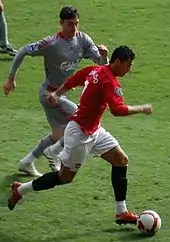 On 1 September 2008 (transfer deadline day), Riera signed a four-year deal with Liverpool for a fee of £8 million, being given the number 11 shirt.[6] He made his Premier League debut on the 13th, playing 71 minutes of a 2–1 home win against Manchester United,[19] and scored his first goal for the Reds as they beat Wigan Athletic 3–2 on 18 October,[20] adding another in the 3–1 victory at PSV Eindhoven in the group stage of the Champions League.[21]