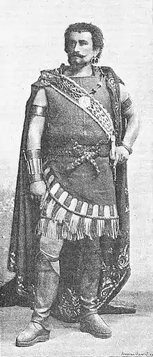 In 1892, Ernest Reyer noticed him and offered him the consecration by giving him a role tailored to his needs at the Paris Opera: Matho in Salammbô. The triumph he obtained allowed him to repeat success after success: Le Cid, Die Walküre, la Damnation de Faust His fame was so great that Verdi offered him the role of Otello that he performeded 35 times until May 1895.