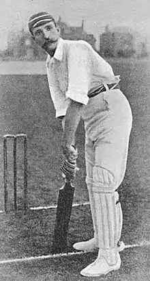 Ward, the son of a coal miner, was born in the colliers village of Waterloo near Rothwell, Leeds, Yorkshire, England. He played four matches for Yorkshire, and his debut was against Middlesex at Bradford Park Avenue in 1886, where he made his highest score of 22.[1] He was not able to sustain a place in the Yorkshire side but, after moving to live in Lancashire, he began a successful career for that county.[2] In total he played 330 matches between 1889 and 1904, with his benefit match in 1902 being worth £1,739. He was the first professional to score 1,000 runs in a single season for Lancashire[3] and repeated this eight times. The best being in 1900, when he scored 1,511 at average of 37.77. During his career he played in seven Tests for England against Australia. Ward's highest first-class score was 219 for the Stoddart team against South Australia, at Adelaide in 1895. His highest Test score was 117 versus Australia, made in Sydney in 1894.